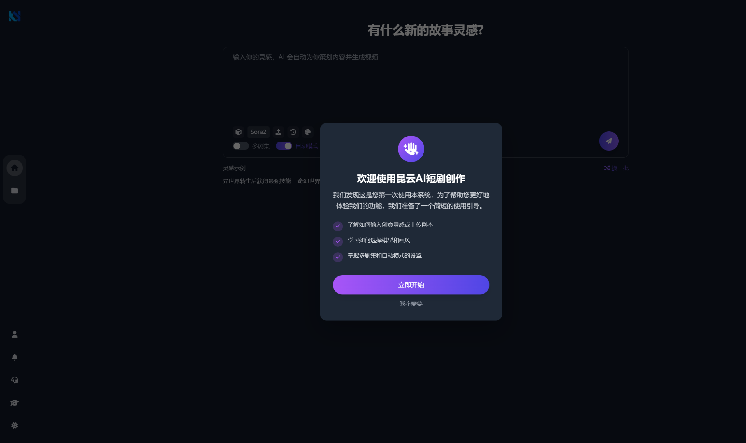 昆云 AI 短剧创作平台是一站式 AI 短剧 / 漫剧智能创作平台,实现创意到成片几分钟快速落地。平台支持 24 种短剧画风,支持自主上传剧本创作,可自动生成剧本分集、带动态视频的角色,智能制作场景与分镜头,还能一键添加配音和 BGM,适配多集连续剧创作与成片一键合成。单集制作成本仅20元左右元,较传统制作省 90% 以上,无需摄像与演员,制作质量媲美专业团队,全程简易操作,小白也能快速上手。